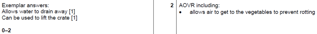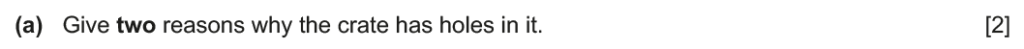Examiner comment: Most candidates were able to correctly explain at least one reason why the crate had holes in it. Air circulation and allowing water to drain away were popular responses.