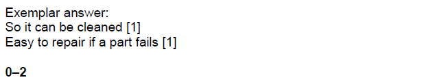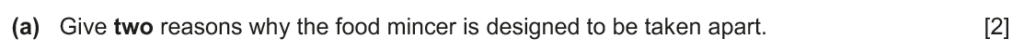Examiner comment: Most candidates gave two reasons why the food mincer is designed to be taken apart. Replacement parts and more accessible cleaning were frequently given as answers.