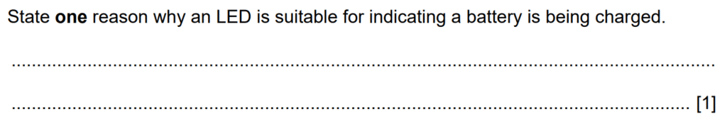 State one reason why an LED is suitable for indicating a battery is being charged.
