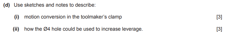 Examiner comment: Candidates found it very challenging to describe motion conversion in the toolmakers clamp.
