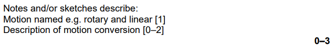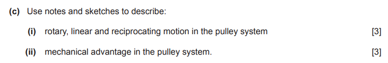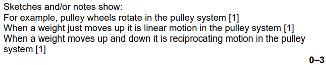 Examiner comment: Candidates found it very challenging to describe reciprocating, liner and rotary motion in the pulley system.