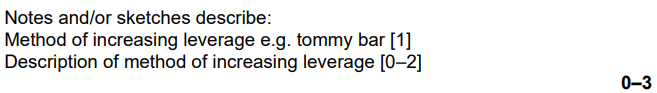Examiner comment: Some candidates understood the use of mechanical advantage, with the use of a tommy bar or a similar principle being the most popular answers.