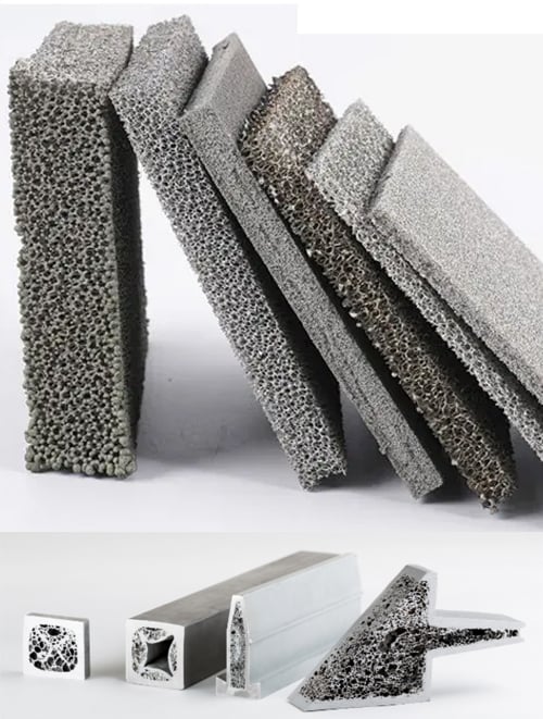 Produced by introducing gas-filled pores into metal (like tiny air bubbles)