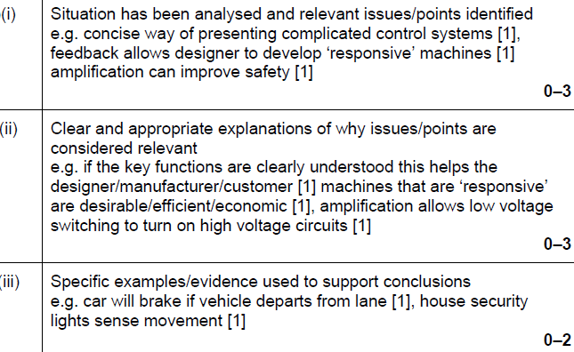 Examiner comment: On occasion candidates had some understanding of the basic control principles but many candidates found this question challenging and did not extend their answers or give many examples.
