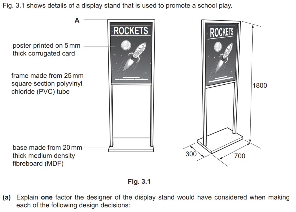 that a PVC frame would not require a finish that could be expensive to apply, that square section tube would be rigid but lightweight so the display stand could easily be moved around, and that PVC tube comes in a range of colours that would improve the aesthetics of the display stand.