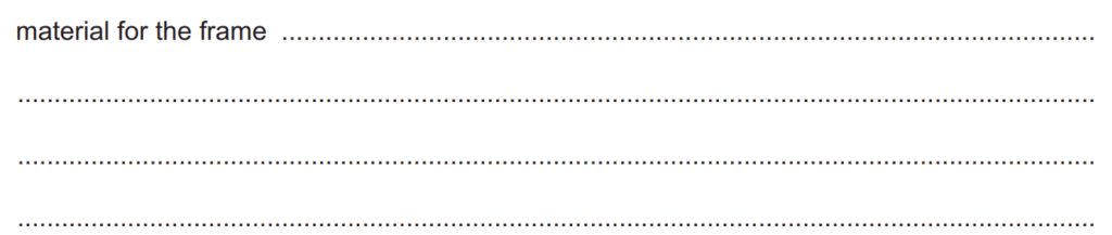 Examiner comment: For the material for the frame, correct answers often explained