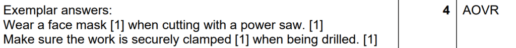 Note: An understanding of health and safety practices should be clearly demonstrated in the realisation section of your coursework portfolio when constructing your final model or finished product.