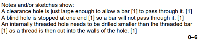 Examiner comment: Candidates found being able to show the difference between clearance, blind and internally threaded holes very challenging.