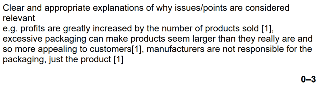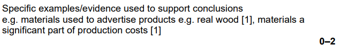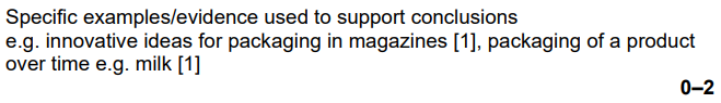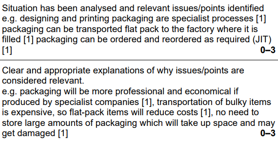 Examiner comment: Candidates often found it challenging to explain why packaging is produced in one factory and then the product inserted into the packaging in another factory. Candidates who discussed issues such as designing and printed packaging being a specialist process, that packaging can be transported flat packed and the need for food hygiene and avoiding contamination answered well. Examples were not always given.