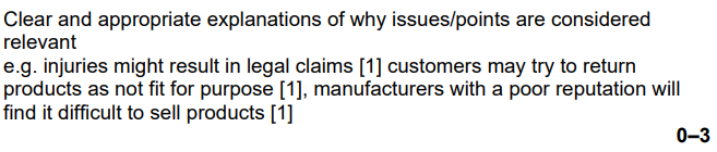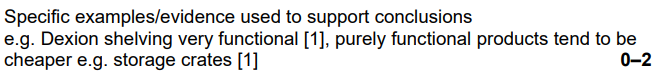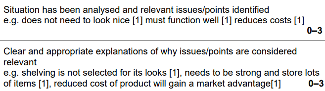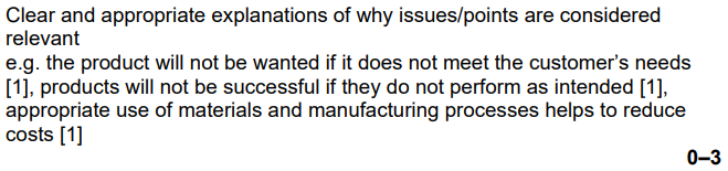Examiner comment: Candidates often answered this question about the functionality of a product being more important than aesthetics well. Stronger answers included issues such as the extra costs of designing aesthetic considerations, some functional safety products or those that are not on display not