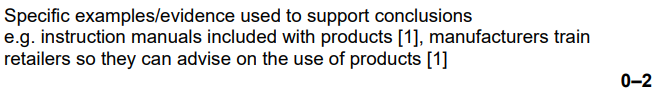 Examiner comment: Candidates often had a good understanding of why manufacturers of electrical appliances provide safety information and operating instructions. Health and safety considerations in terms of people injuring themselves, incorrect use and associated risks or damage to manufacturers’ reputations if appliances are incorrectly used were well explained, with some realistic examples.