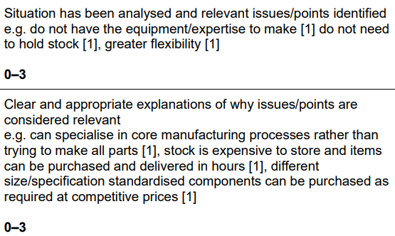 Examiner comment: Candidates gave a broad range of answers relating to their understanding of why manufacturers use standardised components. Economic benefits regarding the reduced cost of the components and not needing to carry stock were often communicated well. Thorough explanations and examples were not always given.